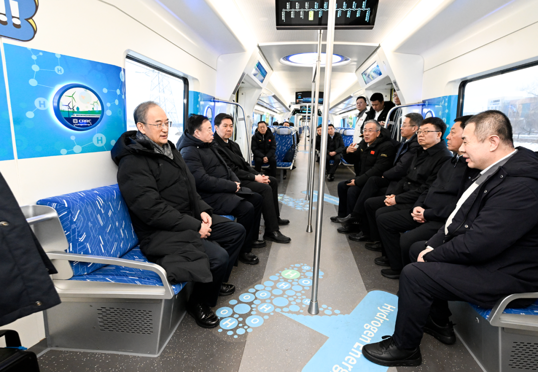2月11日,省委书记黄强,省委副书记、省长胡玉亭到中车长春轨道客车股份有限公司调研,试乘氢能源市域列车。张野 摄