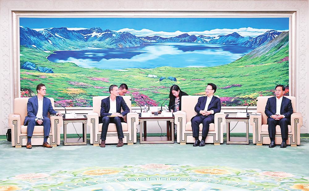 9月29日,省委书记景俊海,省委副书记、省长韩俊一起在长春会见奥迪中国CEO安世豪一行。 记者 邹乃硕 摄