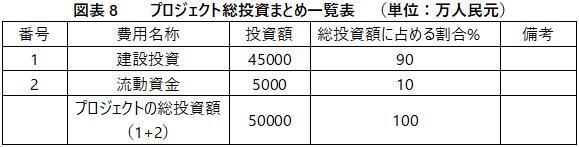 プロジェクト総投資額は50000万元、その内、建設投資額45000万元、流動資金5000万元。