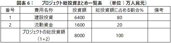 本プロジェクト総投資額は8000万元、その内、建設投資額6400万元、流動資金1600万元。
