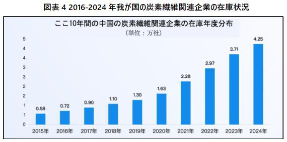 2024年末現在、国内の炭素繊維の年間生産能力は13.55万トンに達し、新規生産能力は1.53万トン増加し、生産能力の伸び率は12.73%である。2025年には中国の炭素繊維生産能力は15.08トンに達する。