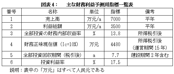 プロジェクトの落成後、年間売上高7000万元、年間利益3500万元、投資回収期間7.7年(税引後、建設期間2年含む)、投資利益率17.5%を見込む。