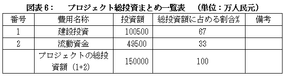 本プロジェクト総投資額は150000万元、その内、建設投資額100500万元、流動資金49500万元。