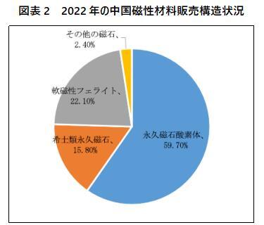 軟磁性材料は磁性材料の一種であり、販売量の割合から見ると、2022年の中国の磁性材料全体の販売量の中で軟磁性酸素体の販売量の割合は22.1%であり、磁性材料全体の販売量で第2位である。