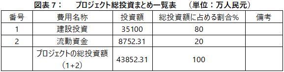 本プロジェクト総投資額は43852.31万元、その内、建設投資額35100万元、流動資金8752.31万元。