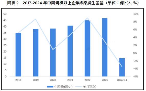 2017-2023年、全国における規模以上の企業の原炭生産量は持続的に増加し、2021年には40億トンを突破し、2023年には46.60億トンに達し、2022年より2.9%増加した。2024年1月から4月にかけて、全国規模以上の企業は計14.80億トンの原炭を生産し、2023年同期より3.5%ダウンした。