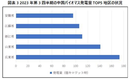 現在、広東省、山東省、浙江省、江蘇省、安徽省は中国のバイオマス発電の主要な発電地区であり、2023年第3四半期の発電量はそれぞれ172.9億キロワット時、141.1億キロワット時、110.6億キロワット時、105.7億キロワット時、95.6億キロワット時に達した。