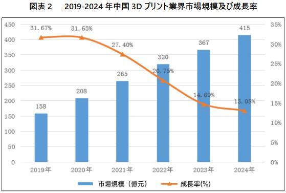 近年、3 Dプリント製品の段階的な大規模な適用と、3 Dプリント機器の需要の一部のバックログの解放に牽引されて、市場規模は成長を続けている。中国商業産業研究所が発表した「2024-2029年中国3 Dプリント市場の需要予測と開発動向予測レポート」によると、2022年の中国3 Dプリント市場規模は約320億元で、前年比20.75%増加し、2023年の市場規模は367億元に達し、2024年の市場規模が415億元に達した。