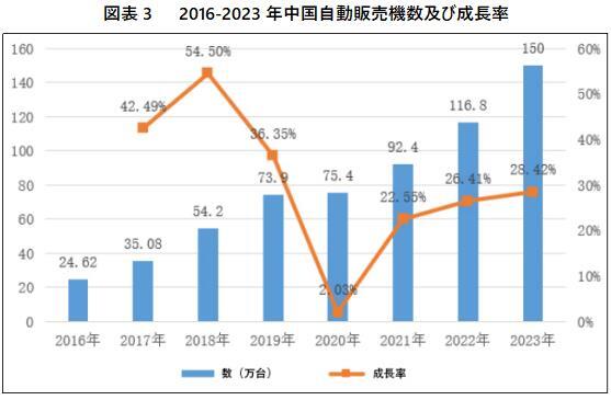 中国の自動販売機小売市場は非常に細分化されている。単一仕入先のサプライチェーン能力、サプライチェーンコスト、運用能力が限られているため、自動販売機小売ネットワークを大規模に開発し、運用管理とサプライチェーン能力が弱い仕入先にとって安定した収益性を維持することは非常に困難である。2023年中国の自動販売機の生産量は71.22万台で、全国の自動販売機の総数は150万台近くであり、2016年から2023年までの複合年間成長率は約30.39%である。