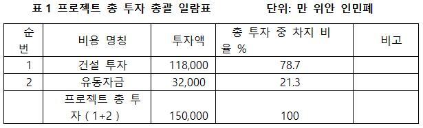 프로젝트의 총 투자는 150,000만 위안이며, 그 중 건설 투자가 118,000만 위안이다.
