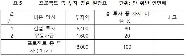 본 프로젝트의 총 투자는 8,000만 위안이며, 그 중: 건설 투자가 6,400만 위안, 유동 자금은 1,600만 위안이다.