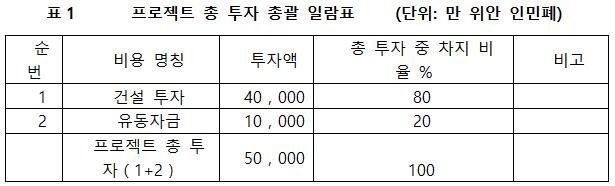 프로젝트의 총 투자는 50,000만 위안이며, 그 중 건설 투자가 40,000만 위안이다.