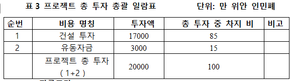 1.3 프로젝트 총 투자 및 자금조달