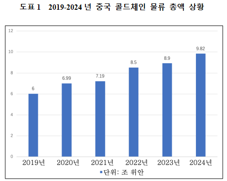 시장 수요의 지속적인 증가, 정부 정책의 지원, 콜드체인 인프라의 지속적인 개선, 기술 진보 및 혁신 주도로 중국의 콜드체인 물류 총액은 끊임없이 증가되고 있다. 2023년 중국 콜드체인 물류 총액은 8조 9천억 위안에 달했으며 2022년에 비해 400억 위안 증가하여 전년 대비 4.6% 늘어났다. 2024년 중국의 콜드체인 물류 총액이 9조 2,600억 위안으로 증가했다.