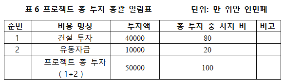 1.3 프로젝트 총 투자 및 자금조달