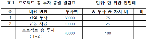 1.3 프로젝트 총 투자 및 자금조달