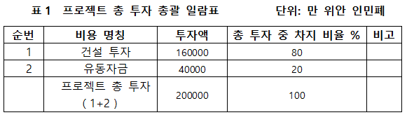 프로젝트의 총 투자는 20 억 위안이며, 그 중 건설 투자가 16억 위안이다.