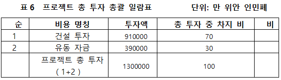 1.3 프로젝트 총 투자 및 자금조달