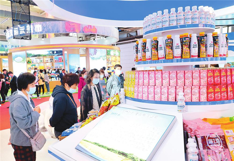 参观者正在展区选购商品。石雷 丁研 摄