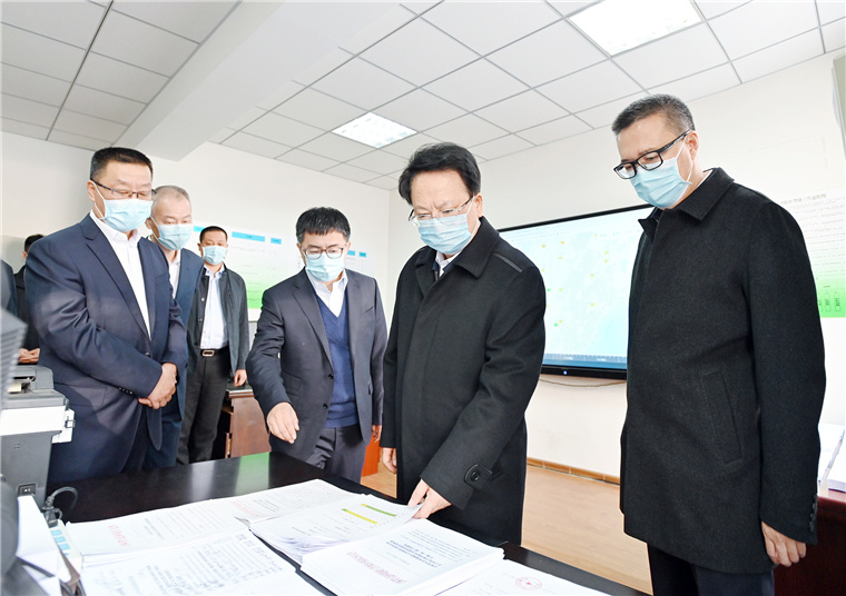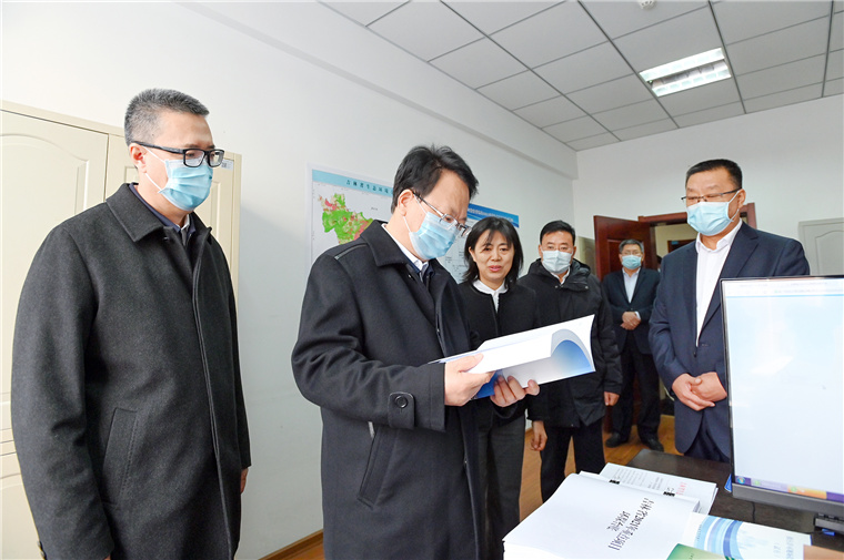 11月17日,省委书记景俊海到省生态环境厅调研,在环境影响与排放管理处实地察看服务经济高质量发展措施落实情况。邹乃硕 摄