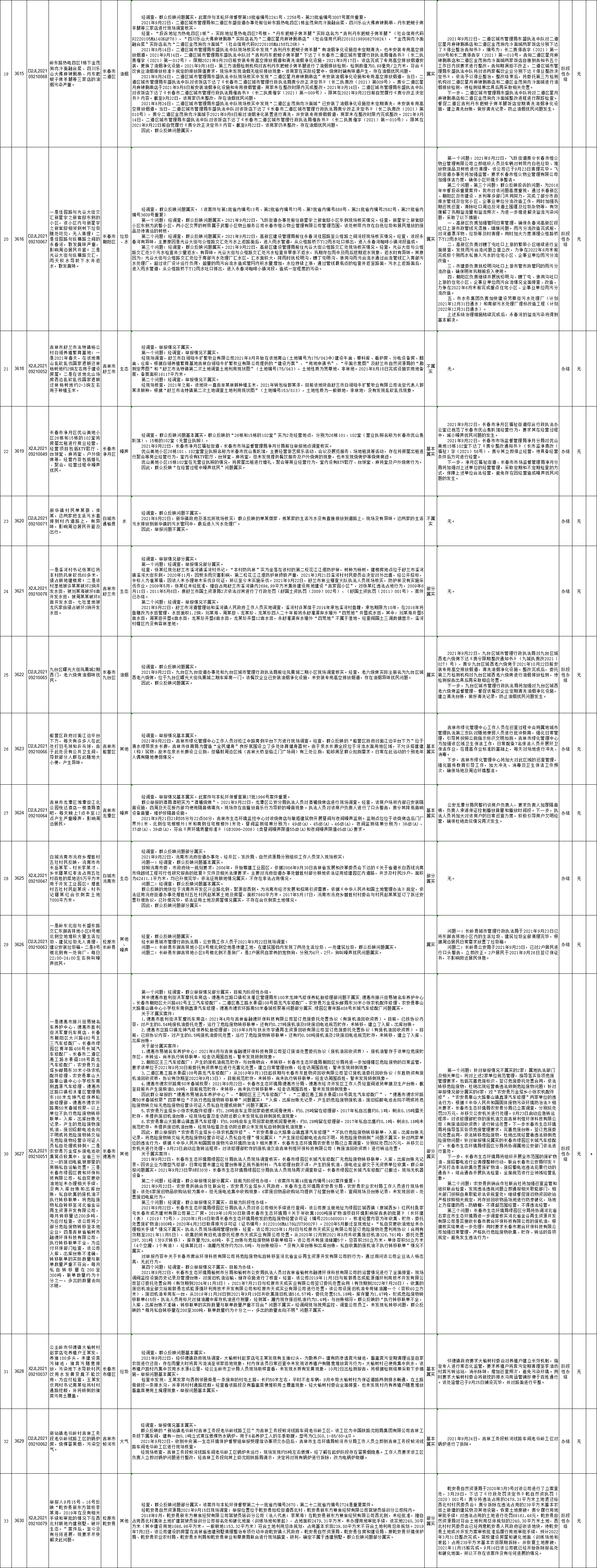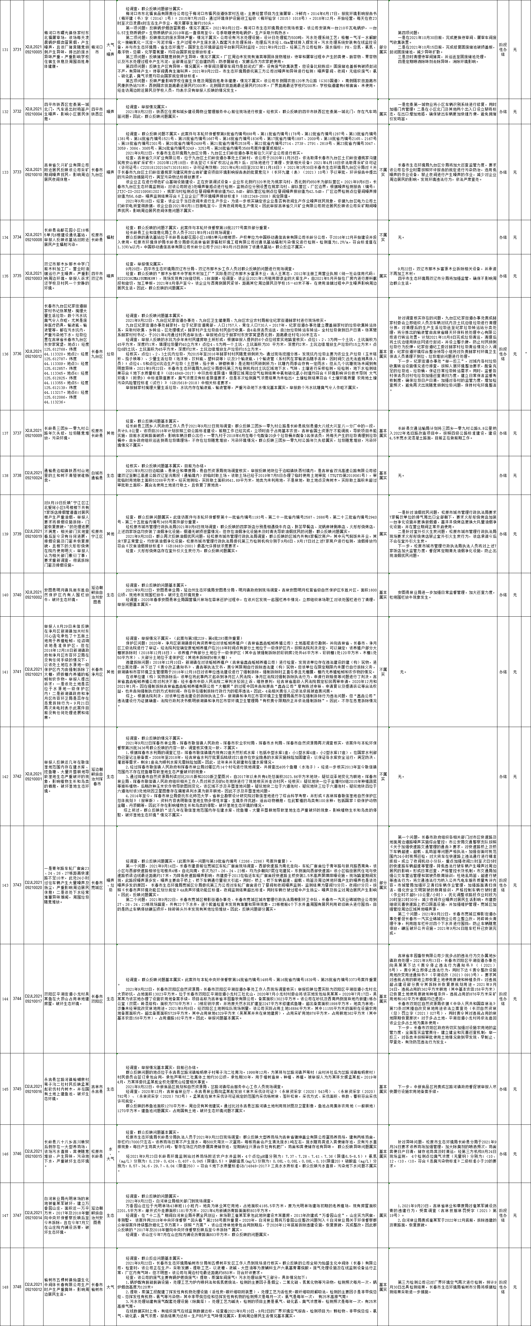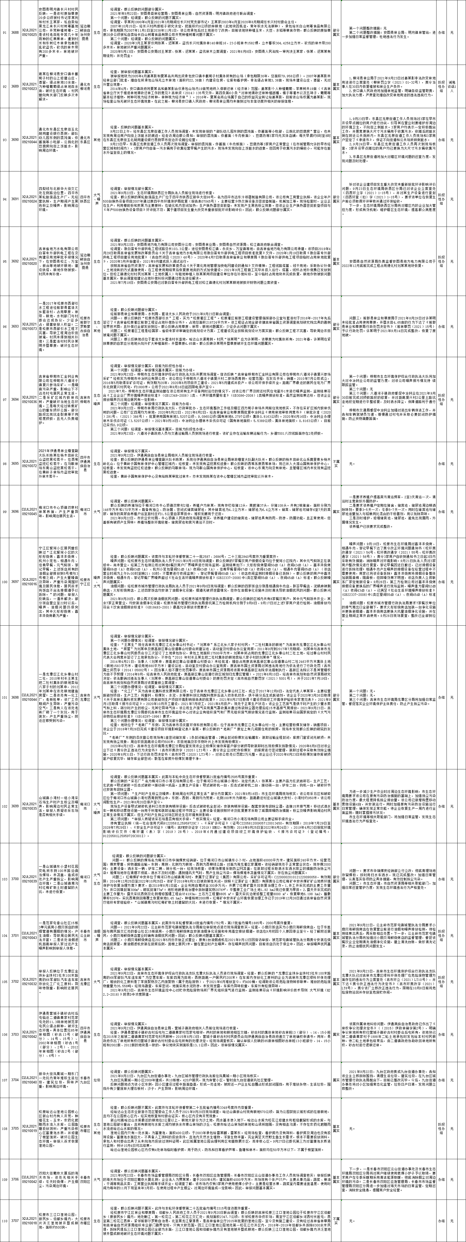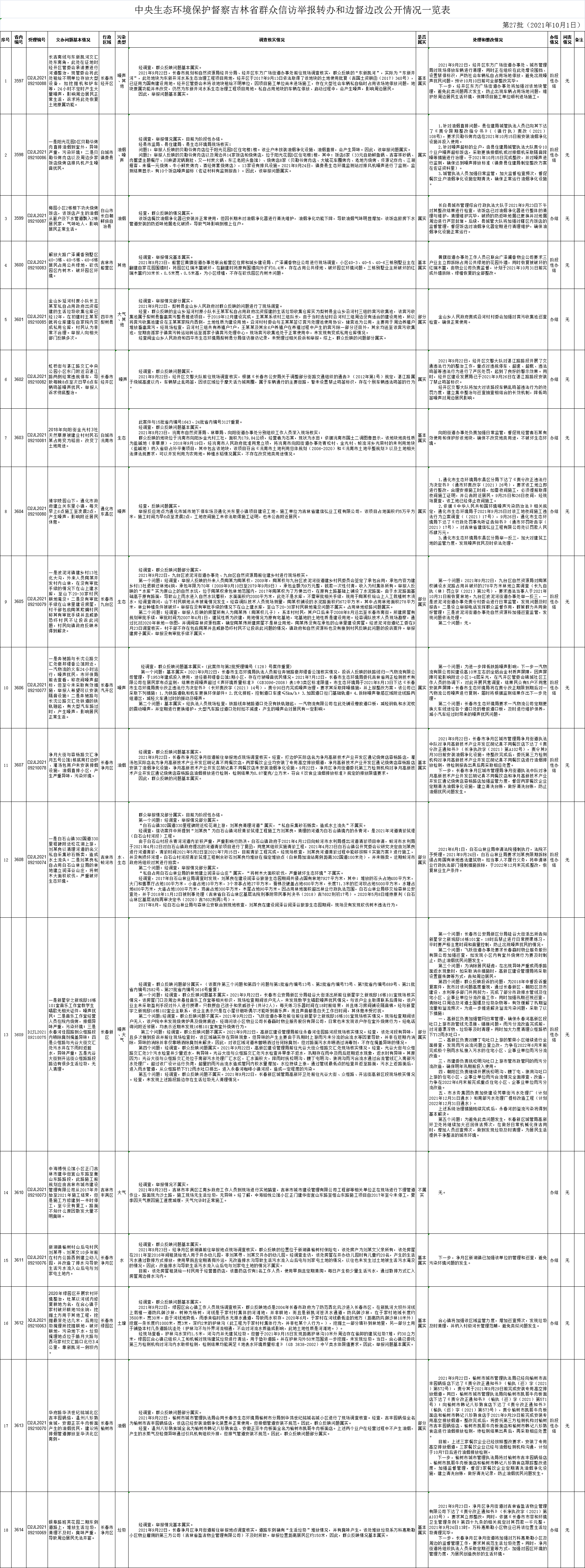 中央生态环境保护督察吉林省群众信访举报转办和边督边改公开情况一览表(第二十七批10月1日)