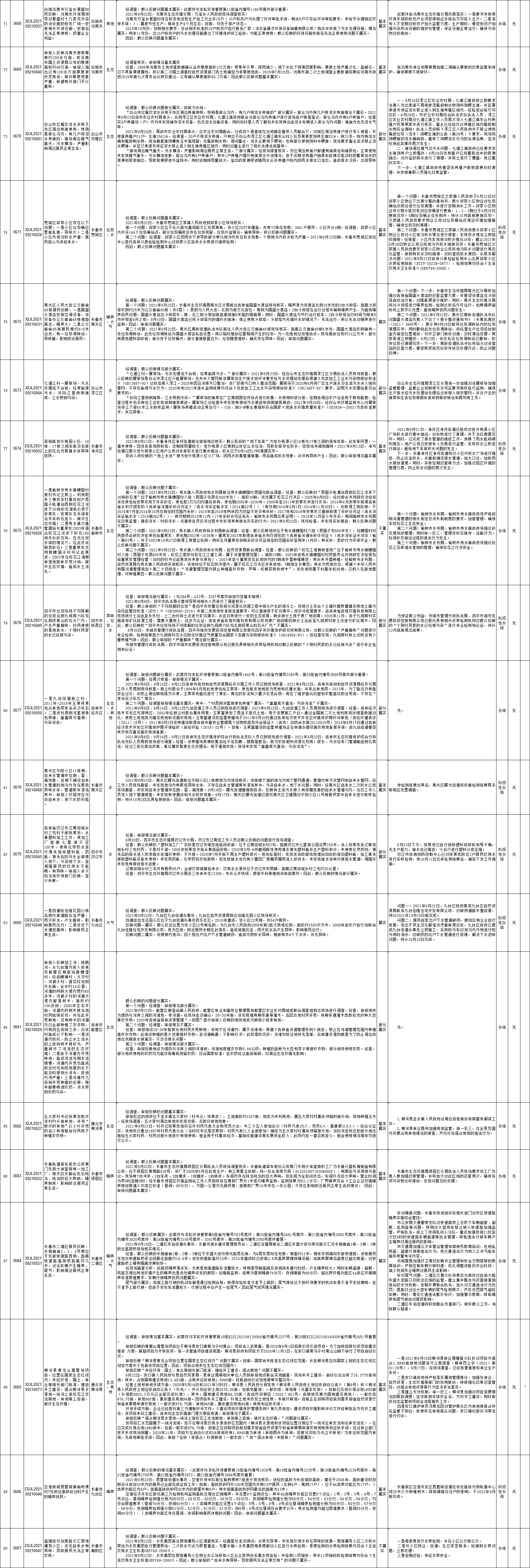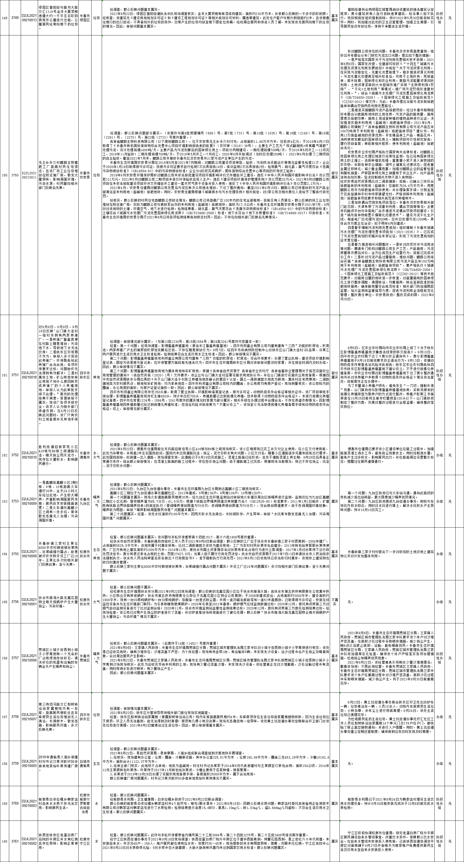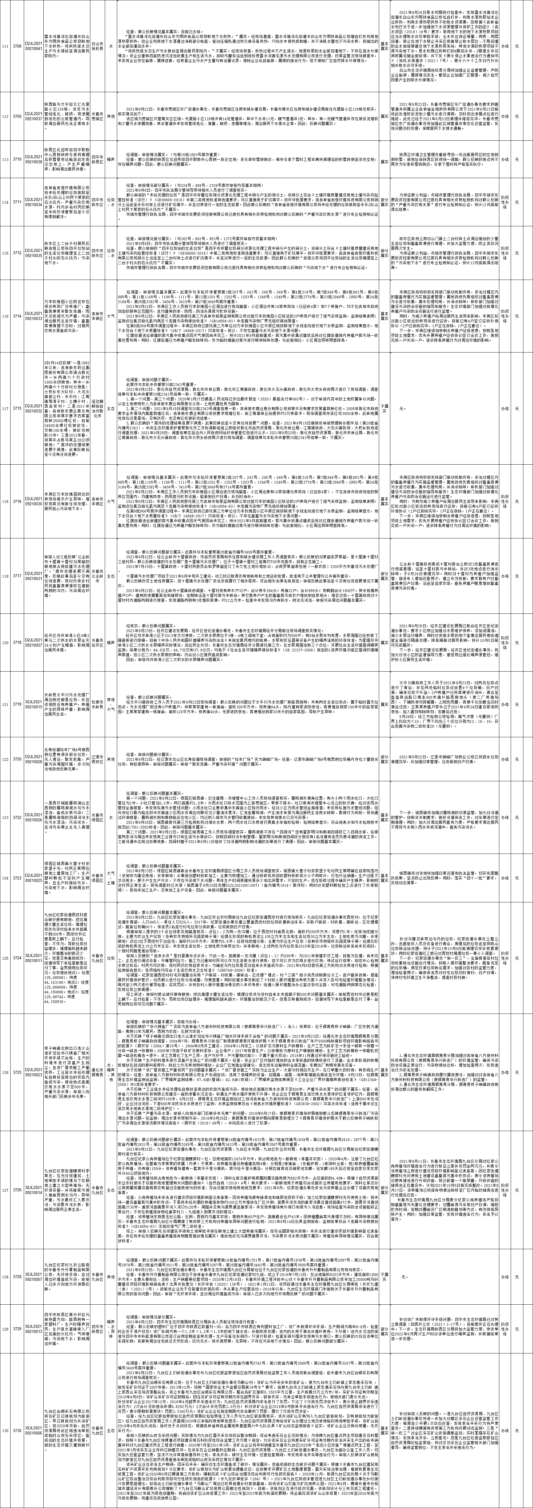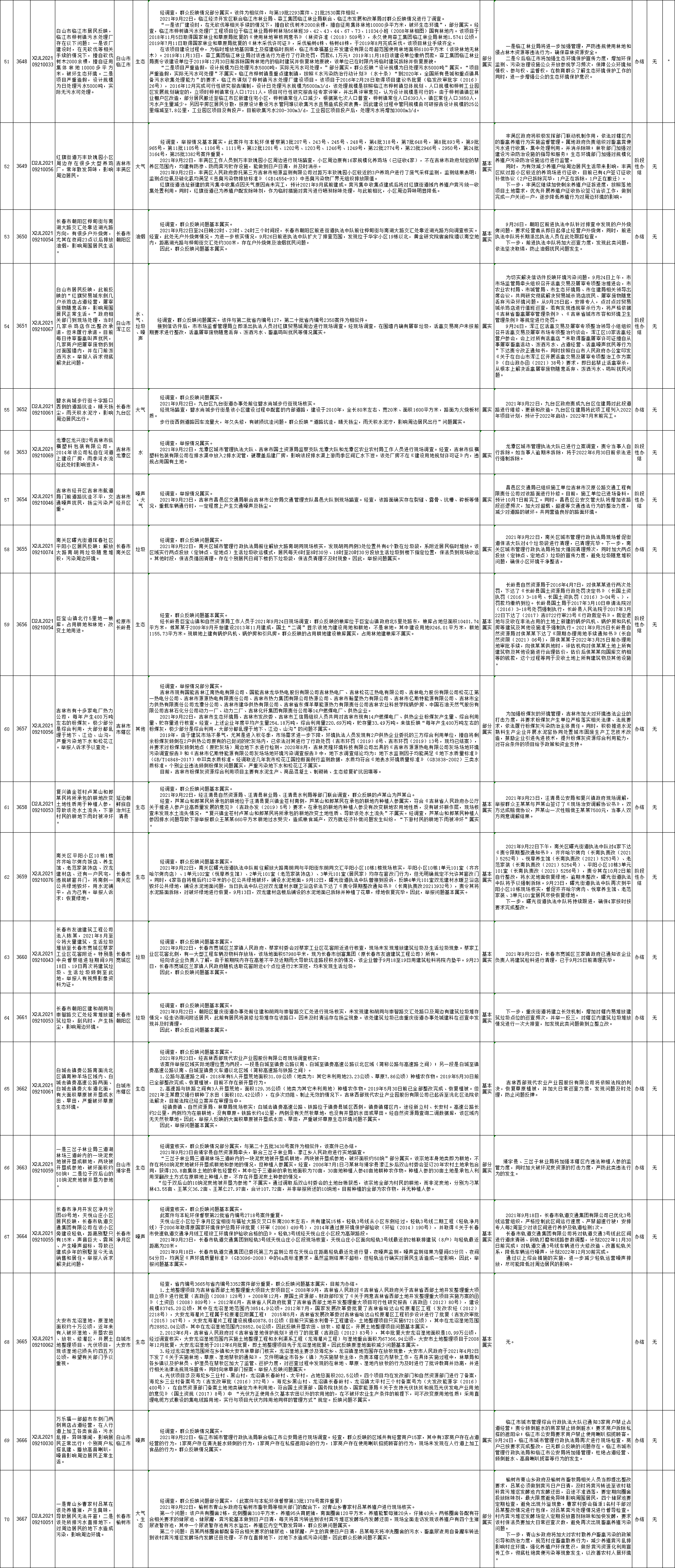 中央生态环境保护督察吉林省群众信访举报转办和边督边改公开情况一览表(第二十七批10月1日)