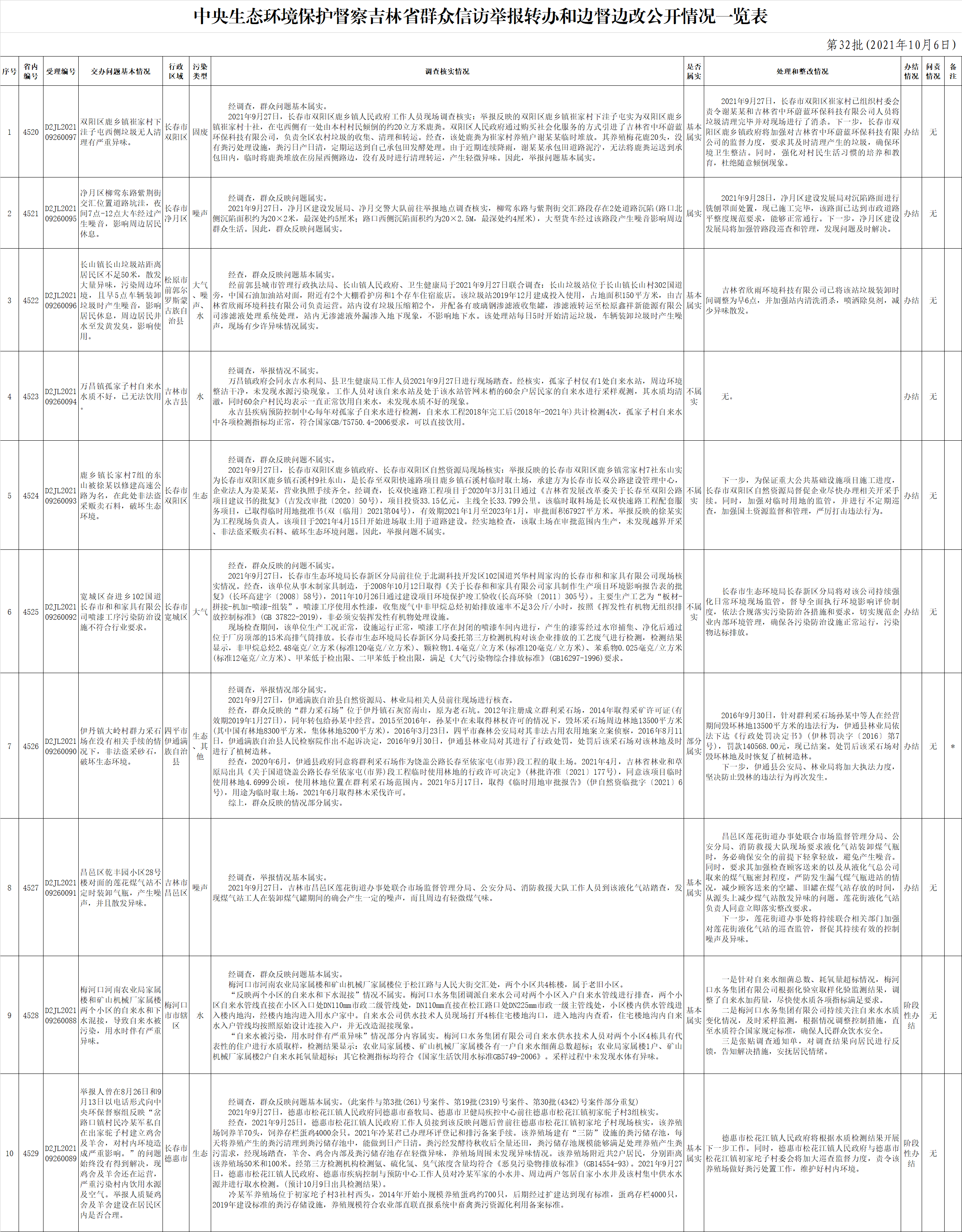 中央生态环境保护督察吉林省群众信访举报转办和边督边改公开情况一览表(第三十二批10月6日)