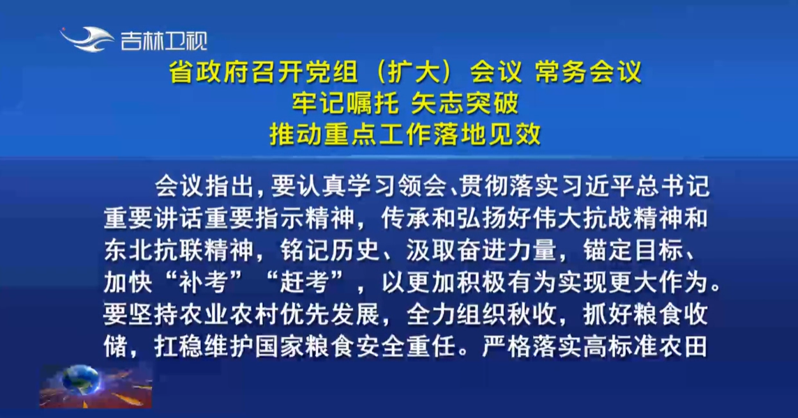 9月29日,省委副书记、省长、省政府党组书记胡玉亭主持召开省政府党组(扩大)会议、常务会议,传达学习习近平总书记近期重要讲话重要指示精神、国务院常务会议精神,审议支持吉林市化债、优化长光卫星公司治理、防汛避险转移补助等政策文件,按照省委部署,研究政府工作举措。