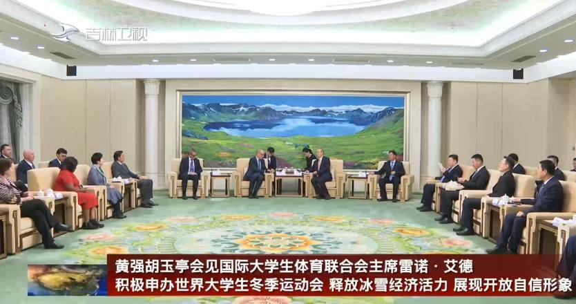 11月24日,省委书记黄强,省委副书记、省长胡玉亭在长春会见国际大学生体育联合会主席雷诺·艾德一行。