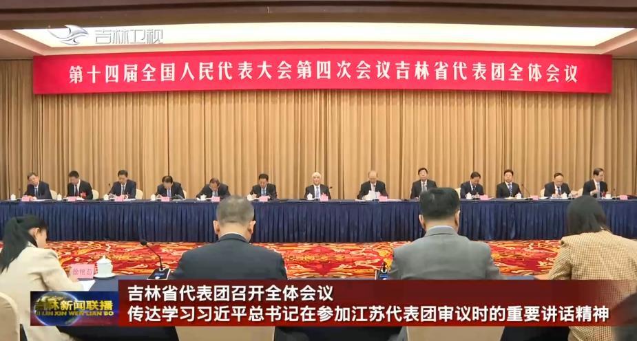 3月6日上午,吉林省代表团召开全体会议,传达学习3月5日习近平总书记参加江苏代表团审议时发表的重要讲话精神。全国人大常委会副委员长丁仲礼作为我省代表参加会议。吉林省代表团团长、省委书记、省人大常委会主任黄强主持会议并讲话。代表团副团长、省委副书记、省长胡玉亭,巴音朝鲁、雒树刚、江金权、景俊海参加会议。
