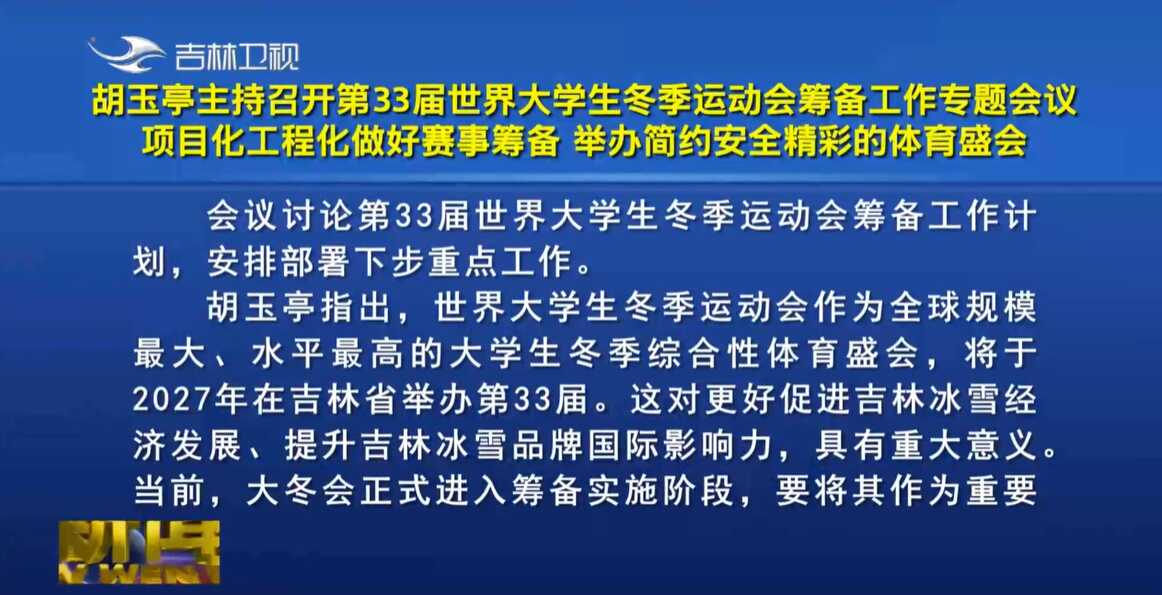 胡玉亭主持召开第33届世界大学生冬季运动会筹备工作专题会议