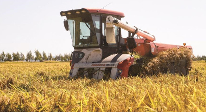 近年来,永吉县万昌镇依托当地丰富的资源优势,打优质农业牌,唱三产融合戏,全面推进现代农业建设。图为万昌镇水稻采收的景象。