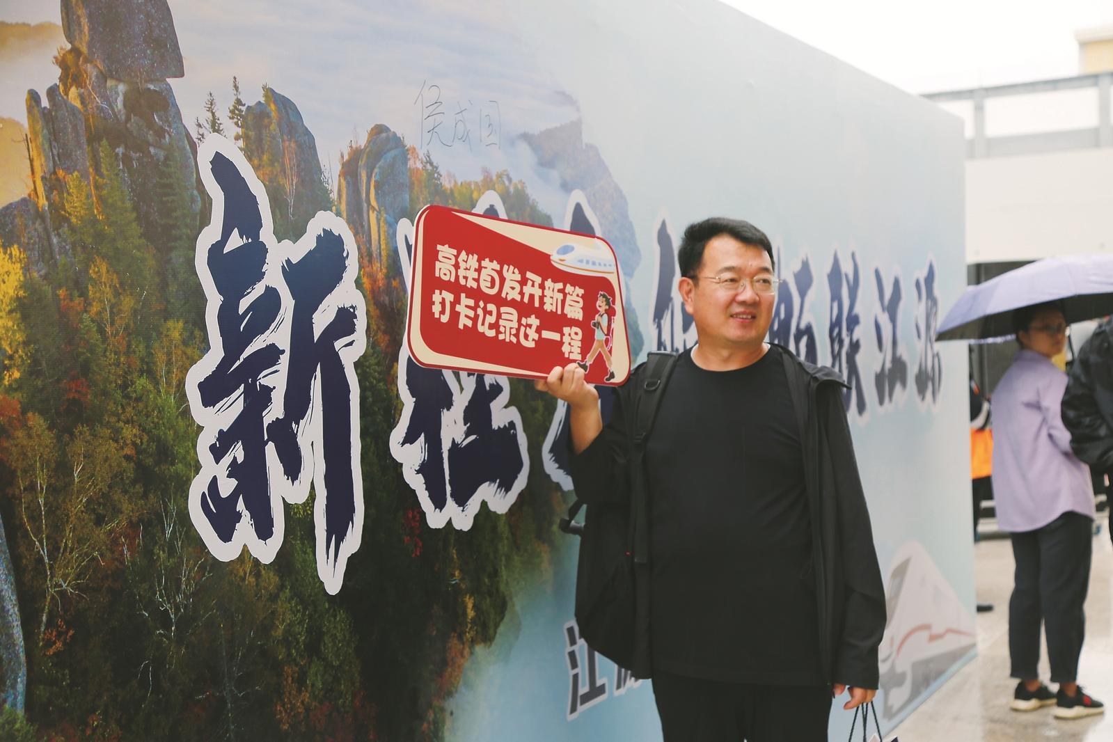 首日开通现场热闹非凡,抚顺站首发列车启动时掌声雷动,旅客纷纷拍照留念,激动地表示“盼这一天太久了”。长白山站出站口,文旅部门送上畅游联票,沈阳—长白山“一日达”成为现实。