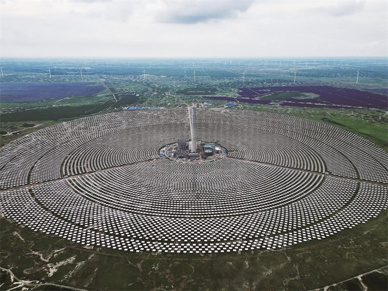 白城市因地制宜发展新质生产力,构建具有白城特色优势的现代化产业体系。图为位于大安市乐胜乡的吉西基地鲁固直流外送140万千瓦外送项目2-1(光热100MW)现场,一座233米高的吸热塔如巨人般拔地而起,成为地平线上最醒目的能源新地标。以塔为心,19667面定日镜组成的巨大镜场,宛如一片波光粼粼的“银色海洋”。张磊 摄