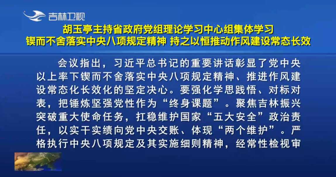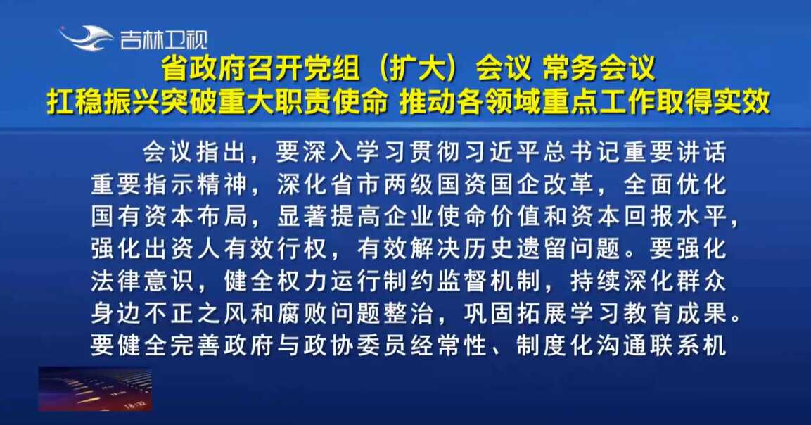 - 省政府党组召开2025年度民主生活会 坚决做到笃信务实担当自律 凝心聚力推动吉林高质量发展 胡玉亭主持并讲话01-19