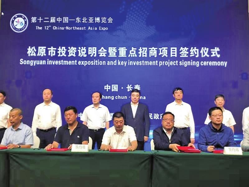 在此次博览会上,松原市举办了投资说明会暨重点招商项目签约仪式,邀请近260名国内外知名企业负责人参加,共有沈阳市美名羊肉业有限公司投资3亿元的肉羊屠宰精深加工项目、山东沾化福美康生物医药有限公司投资5亿元的10万吨草酸生产项目、天途食品科技有限公司投资2.7亿元的素食米饭及小包装食用油项目等19个项目在此次东北亚博览会上成功签约,签约总额达57.44亿元。