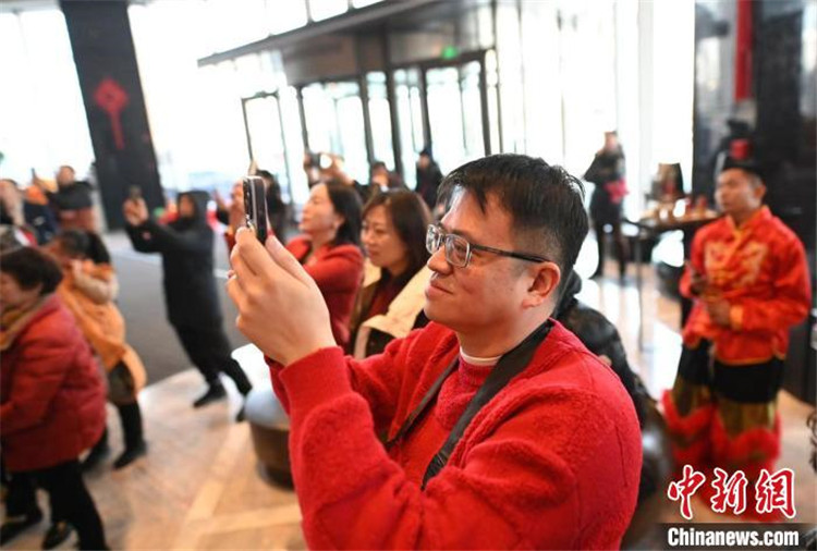 2月10日,林慰宗在长春拍摄酒店里的迎新春活动。