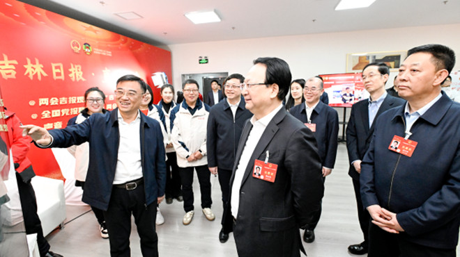 全国两会期间,省直新闻单位与中央新闻单位全面配合、通力协作,不断创新媒体深度融合的内容生产和呈现方式,推出了一系列高质量高水平的优秀报道和融媒产品。景俊海、胡玉亭、朱国贤实地察看吉林日报、吉林广播电视台、中国吉林网前方工作室和演播平台,详细了解新闻报道采编刊播等制作流程。在充分肯定我省全国两会新闻宣传工作后,景俊海说,连日来,中央和省直各新闻单位统筹前方后方、场内场外、网上网下,精心策划、采写刊播了一批站位高、分量重、有深度、有温度的好报道,充分展现了我省代表委员履职风采和新时代吉林全面振兴的新气象新变化,取得了良好的宣传效果和传播效果。