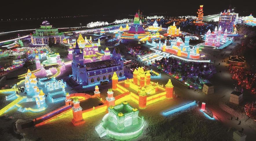 长春冰雪新天地夜景。