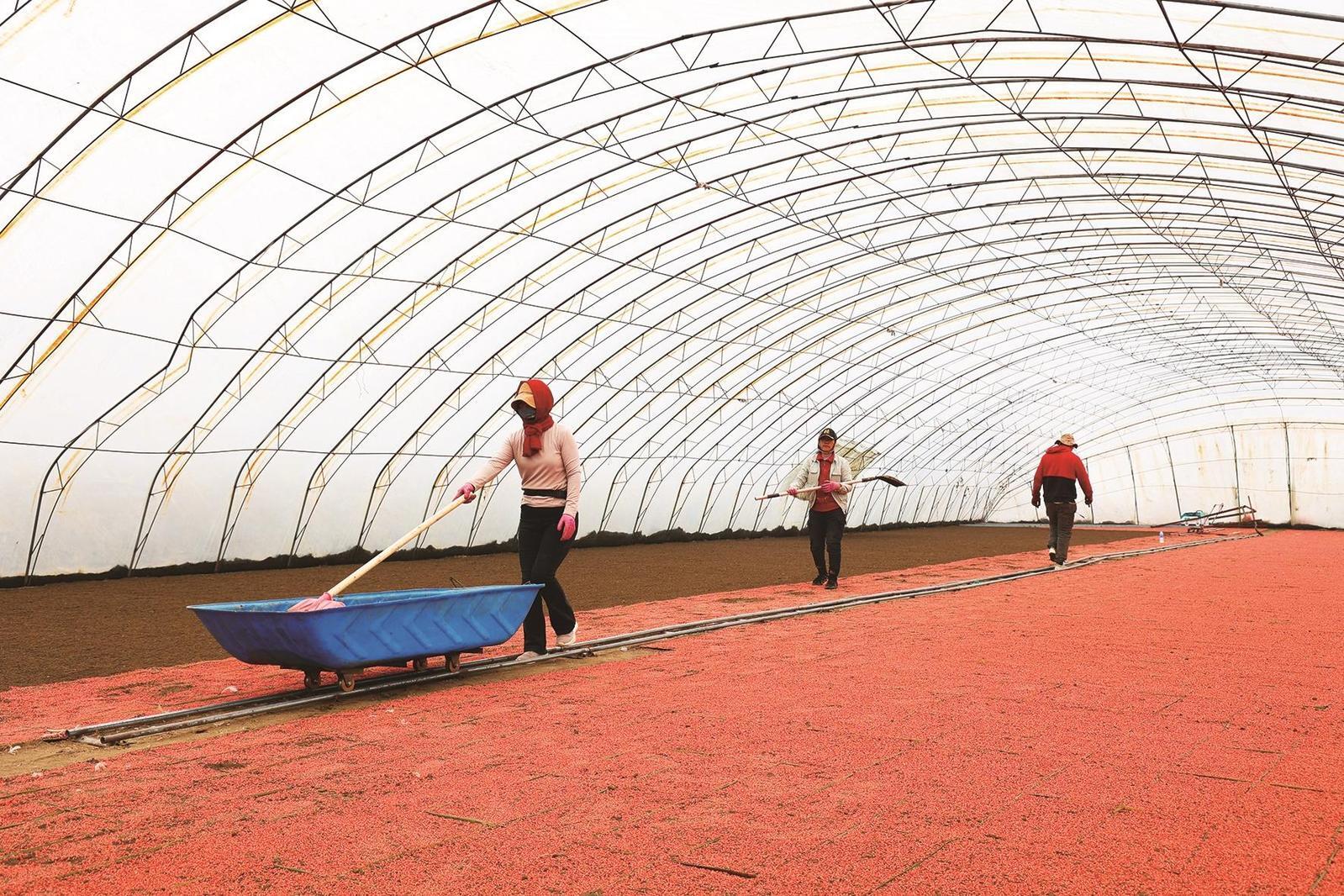 前郭灌区水稻种植户抢抓农时积极开展大棚育苗工作。