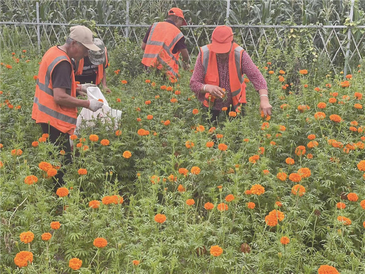 农安县合隆镇陈家店村民在采摘万寿菊。王春胜 摄