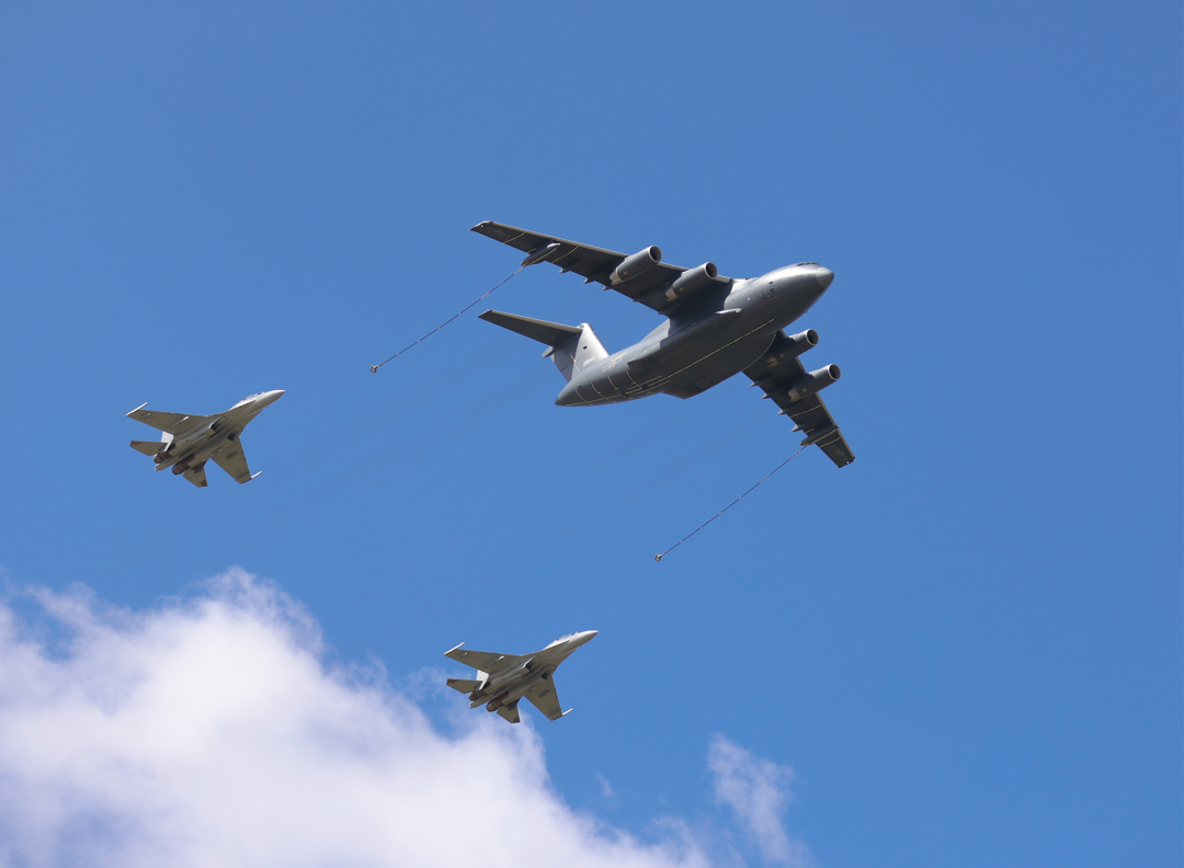 9月19日,2025空军航空开放活动和长春航空展举行开幕式。运油-20翱翔天际,展示国产军机硬核实力和先进性能。张野 摄