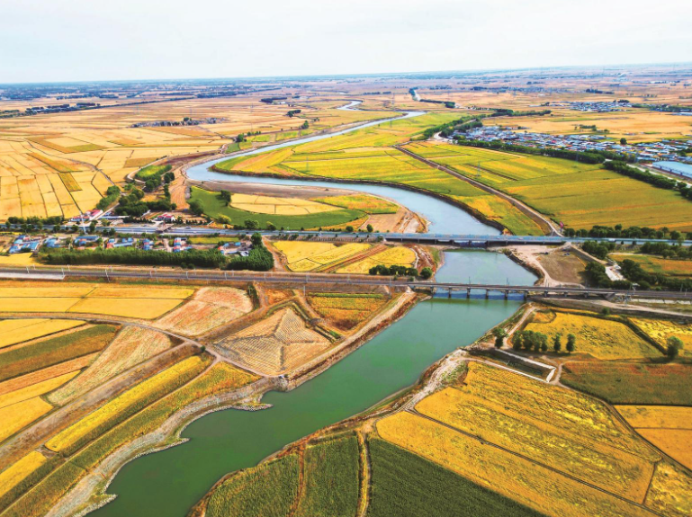 金秋时节,白城市洮儿河沿岸如同一幅绚丽的丰收画卷。张磊 摄
