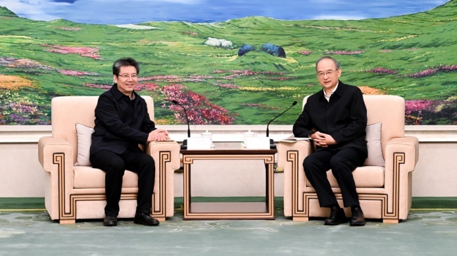 12月24日,省委书记黄强在长春会见中国科协党组书记、分管日常工作副主席、书记处第一书记贺军科一行。张野 摄
