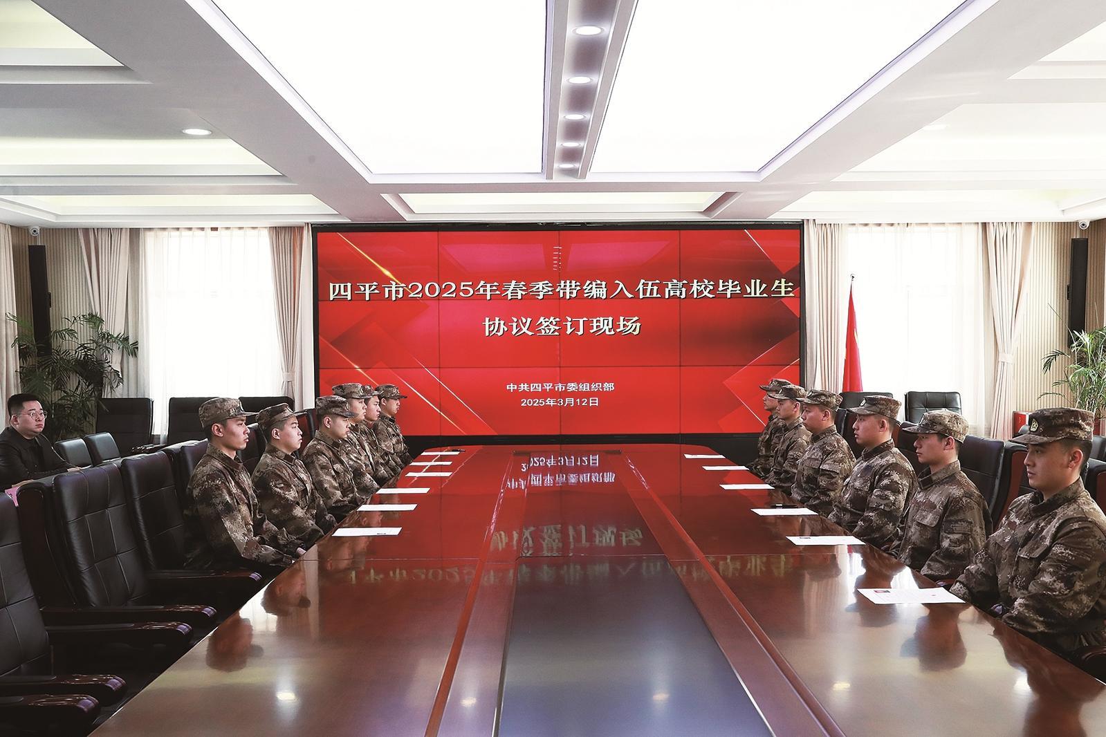 四平市2025年春季带编入伍高校毕业生协议签订现场。
