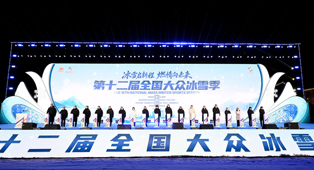 19时许,启动仪式正式开始,全场奏唱国歌。省政府党组成员金育辉致欢迎辞,诚邀各地朋友到吉林滑粉雪、赏雾凇、观冬捕,携手共创大众冰雪运动更加美好的明天。国家体育总局副局长佟立新致辞,预祝第十二届全国大众冰雪季圆满成功。国际奥委会主席考文垂视频致辞,祝愿大家度过一个精彩纷呈的雪季,尽享运动之乐、友谊之暖、冰雪之欢。优秀运动员代表周洋、武大靖共同宣读《冰雪运动倡议书》,文化和旅游部产业发展司司长缪沐阳发布“跟着赛事去旅行”2025—2026中国冰雪赛事活动目录。