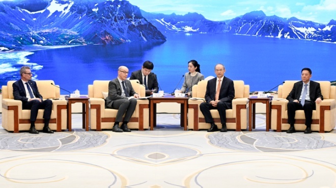 1月29日,省委书记黄强,省委副书记、省长胡玉亭在长春会见国际大学生体育联合会主席雷诺·艾德一行。