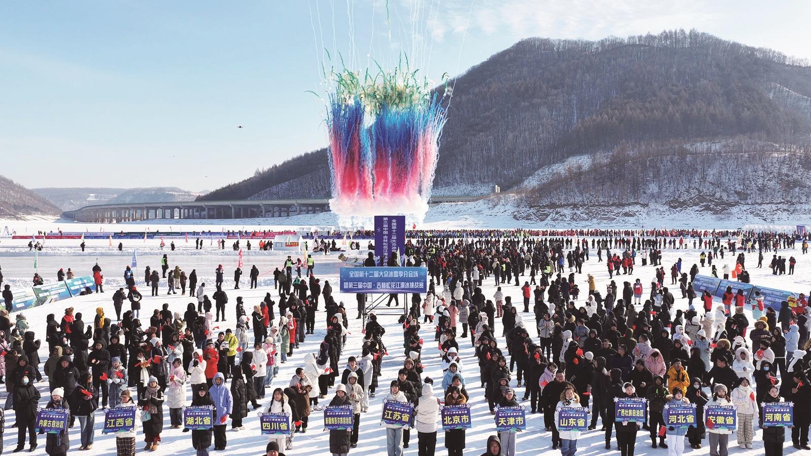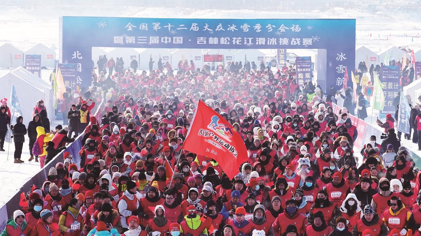 3000余名冰雪运动爱好者齐聚白山,在松花江上共赴速度与激情的冰雪之约。