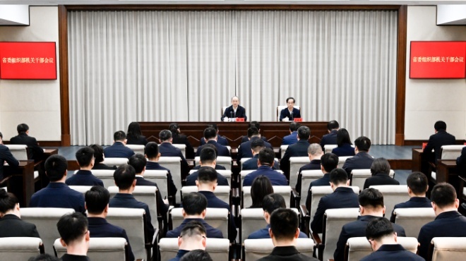 2月9日,省委组织部召开机关干部会议。省委书记黄强出席并宣读中央有关决定。张野 摄