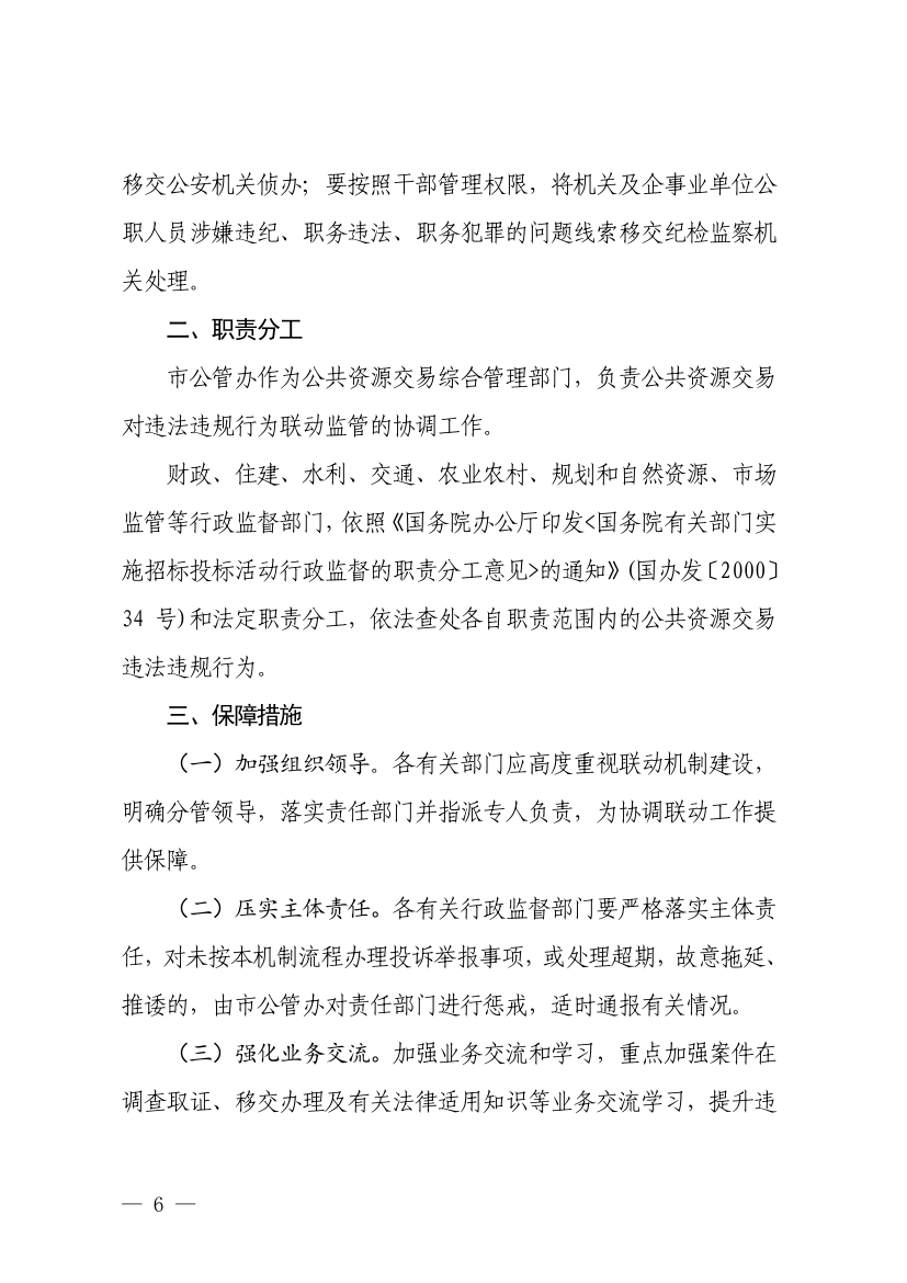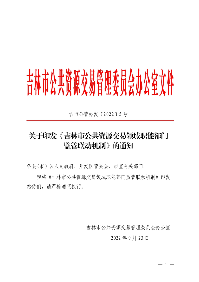 关于印发《吉林市公共资源交易领域职能部门监管联动机制》的通知吉市公管办发〔2022〕5 号